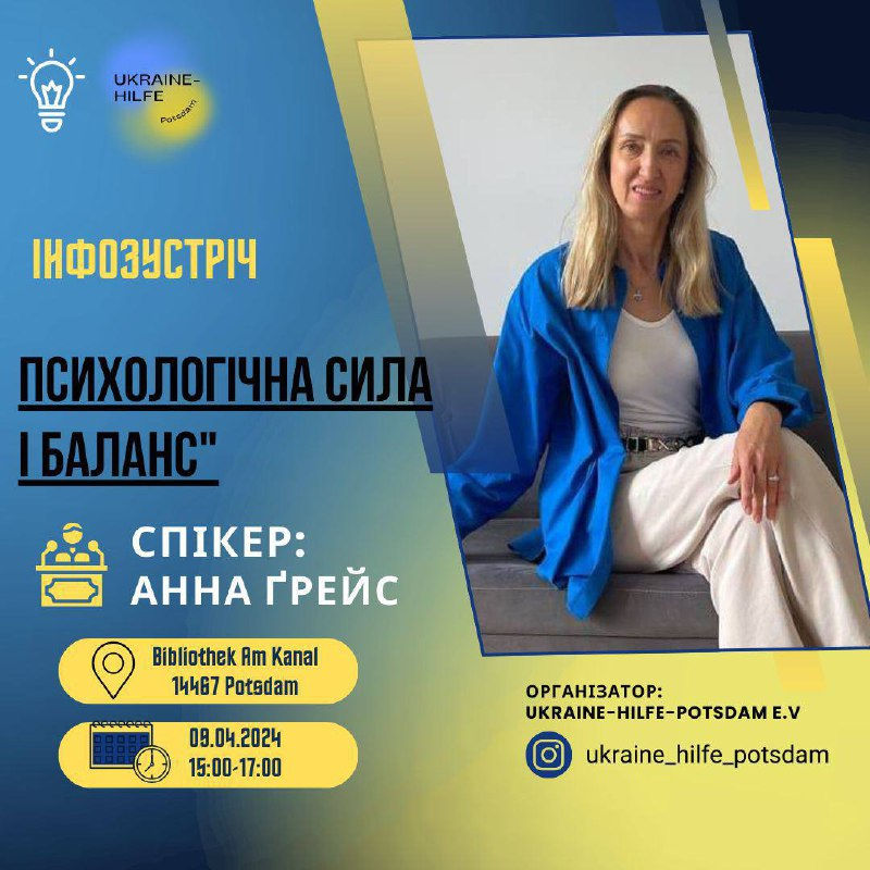 Ukraine-Hilfe Potsdam e.V.  запрошує на інформативну зустріч: "Психологічна сила і баланс".