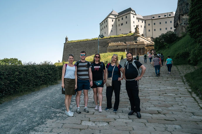 Бронюєте самі житло, організатор поїздки цим не займається! (особисто я ночуватиму в Дрездені в готелі, щоб погуляти вночі містом) Зранку прокидаємося, щоб продовжити поїздкою до Königstein. Другий день 29.05 прогулянка до фортеці Königstein. Зустріч об 11-10 на станції Königstein. Йдемо пішки 35 хвилин до фортеці, вхід у фортецю платний – 11 євро. Фортеця величезна, ходимо, фотографуємося, їмо. Виходимо десь у 16 ​​з фортеці у бік залізничної станції. Транспорт до Потсдама ходить кожні 30 хвилин.
